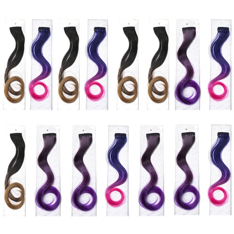 1. Extensión de cabello con clip de color estampado liso, largo: 16 a 20 pulgadas, cabello usado con fibra de alta temperatura. Se usa la misma otra extensión de cabello con clip, fácil y rápida. Color misma imagen.