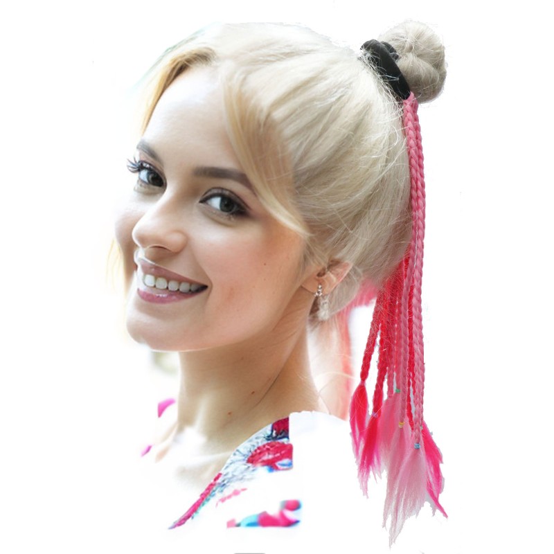 Obtenga lo más destacado en diferentes ocasiones: las coloridas extensiones de cabello trenzado con cola de caballo son adecuadas para el peinado DIY de las niñas para obtener lo más destacado. Un accesorio perfecto para el cabello para cumpleaños, discotecas, carnavales, conciertos, parques de diversiones, disfraces y disfraces de cosplay canival.