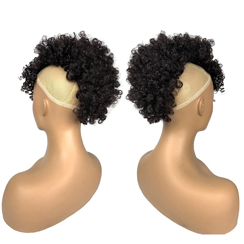 Paquete: 1 extensión de cabello afro rizado con cola de caballo y flequillo